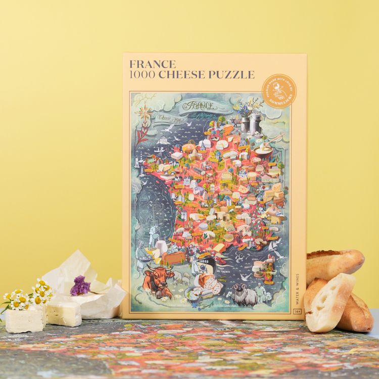 Set off on a tour de France of cheese with this delicately hand-illustrated puzzle and explore the country’s unique diversity from Normandy to Corsica. From north to south, every cheese reveals a terroir and age-old traditions. Piece by piece, you will recognize some of France's most well-known cheeses and discover some well-kept secret dairy delights.